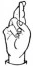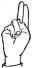 На ћирилици написано ХРАНИМИР ПЕТРОВ састоји се из 14 слова [?]. Исписано ћириличном једноручном азбуком за глувонеме: